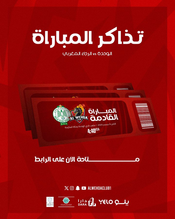 013 مايو، 2026 9:00 ماستاد مدينة الملك عبدالعزيز الرياضية (مكة المكرمة)